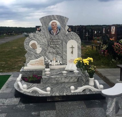 На постаменті також розташована книга, що символізує професію Поплавської, адже вона була вчителькою. Окрім цього, там є підсвічники, живі квіти і невеликі арки.