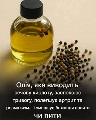 Натуральна олія з багатьма перевагами: знижує рівень сечової кислоти, знімає трив0жнlсть, полегшує артрит та ревматизм, а також допомагає боротися із залежностями.