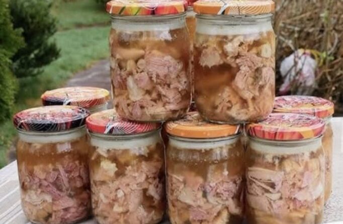 Я розлив готовий яловичий холодець у банки по 350 мл, додавши в кожну по 100 г м’яса і 200 мл бульйону. Стерилізація проходила під парою при тиску протягом години. Для банок об’ємом 0,5 літра я стерилізував би при 120 градусах протягом 75 хвилин. Після приготування швидко охолоджую до кімнатної температури та зберігаю у прохолодному місці до застигання. Рішення напрочуд просте.